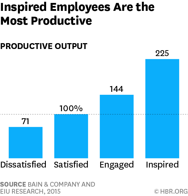 If you think you're fine because your team seems satisfied, realize that if your entire team were inspired, you'd need less than half the people for the same output (see chart by Bain).